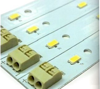 С помощью поверхностного монтажа светодиоды припаиваются к платам, так называемым светодиодным модулям или светодиод (привычные нам зеленые или окрашенные в другой цвет пластины), либо из алюминия. У текстолита по сравнению с алюминием теплоотвод хуже - об этом параметре и его значении мы уже говорили. По той же причине модули должны иметь плотный контакт с корпусом.